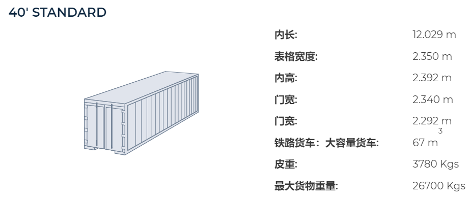 40尺柜海運集裝箱尺寸規(guī)格,40尺集裝箱體積重量參數(shù)表